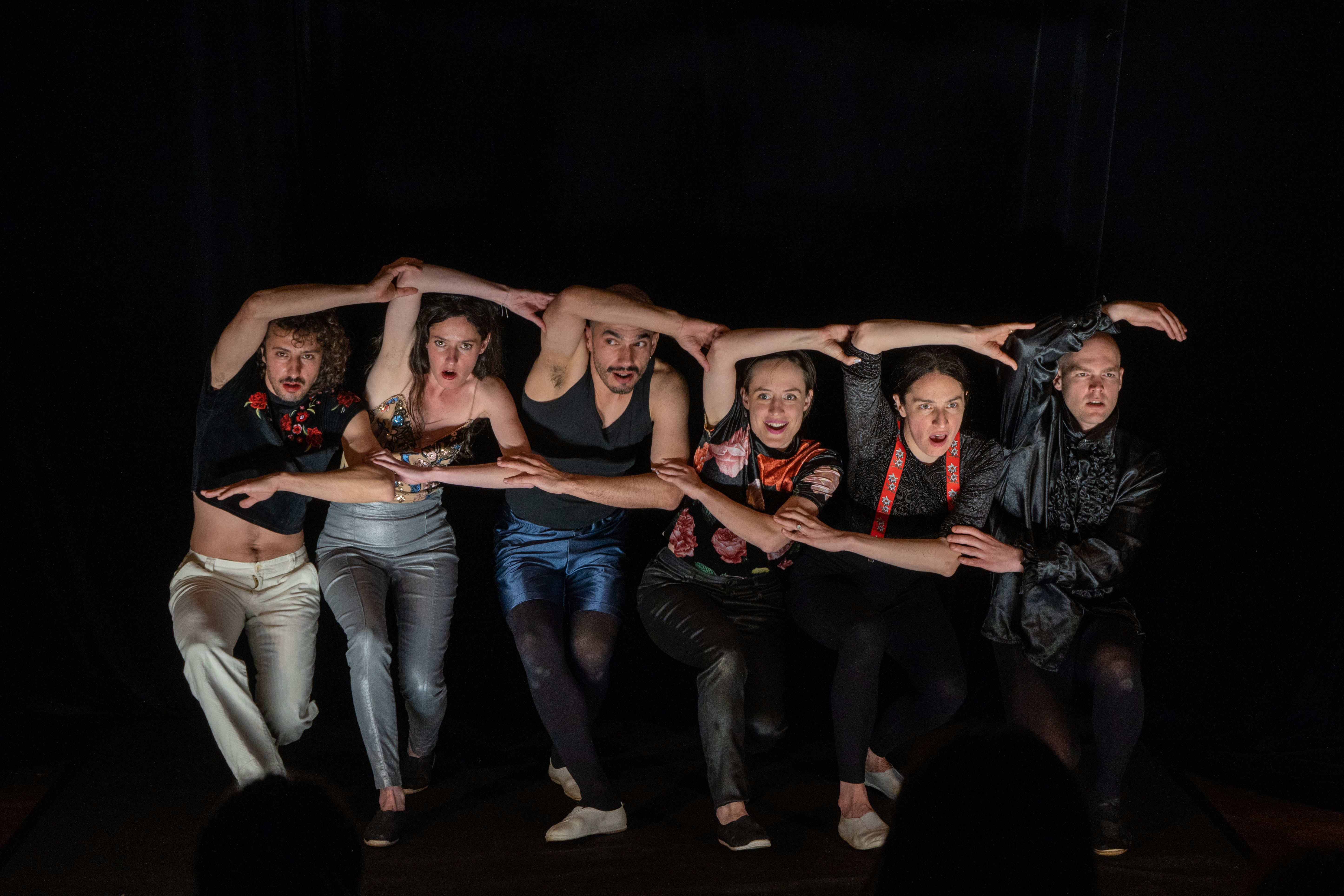 "Pour Cabaret Brouillon, six performers proposent de jouer avec les vestiges et les ruines qu’offre l’histoire du cabaret. Parler, chanter, danser, proférer, faire semblant, suspendre provisoirement l’actuel et laisser apparaître quelques figures grotesques salutaires et joyeuses.