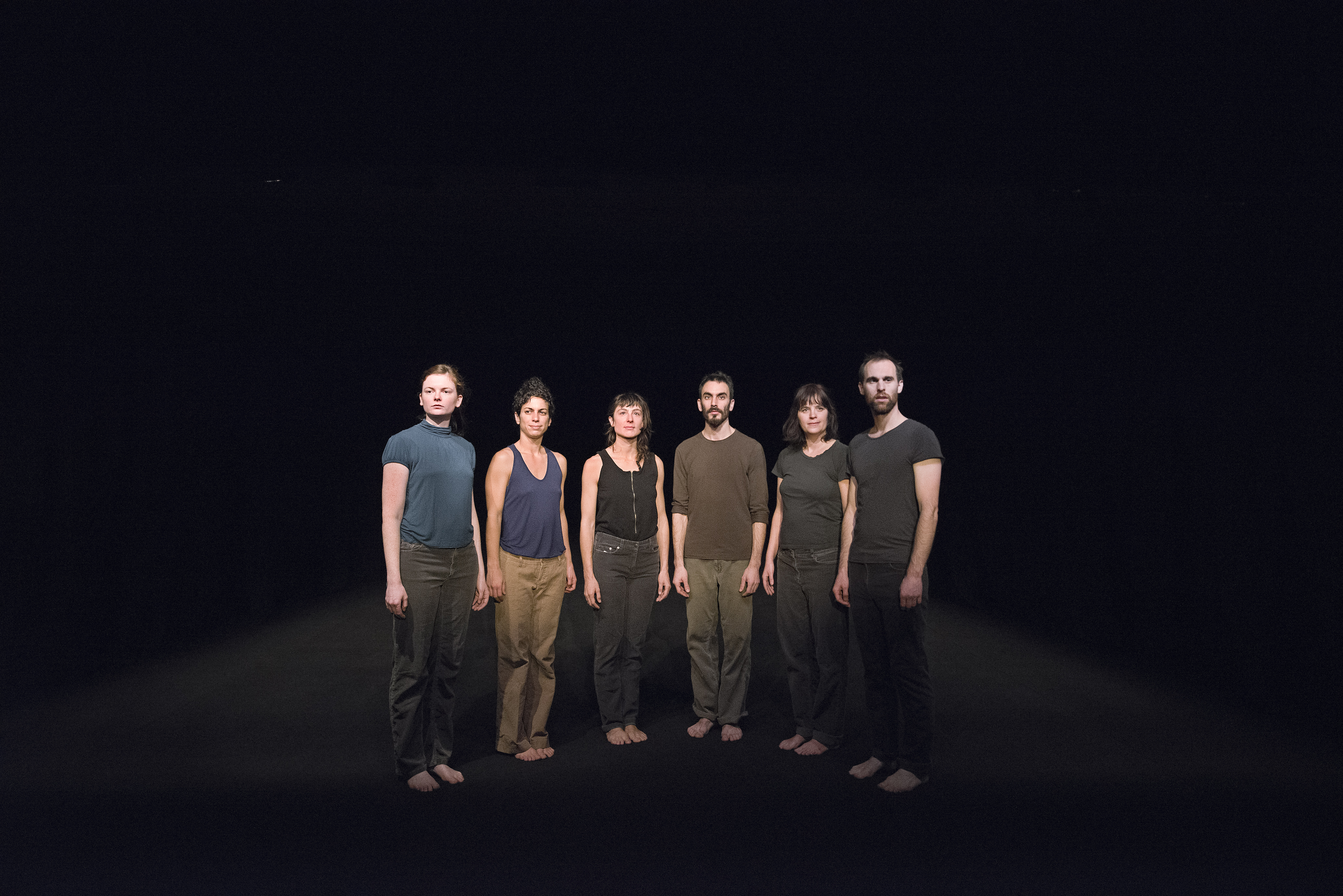 Un chœur, non un groupe uniforme ou encore fusionnel, ni même une série d’individus, mais une image d’un petit peuple d’interprètes unis et séparés qui pose devant nous du commun autant que du singulier : du commun sans rien de commun. Sur une même ligne certes, mais à des places différentes, dans une même posture mais avec des attitudes variées, une station donc, mais des êtres debout. Mais encore, une même direction avec des regards divergeants, une liste de mots mais soumise à des inflexions de voix, un affect mais des affections, une allure mais des vêtements, un espace mais des occupations diverses, un point de vue donc, et des interprétations.