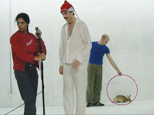 1 - Quatre protagonistes qui enchaînent avec une nonchalante et insolente simplicité de courtes actions performatives rappelant tout autant l’esthétique des sketches de cabarets que des one-minute-scenarios de Robert Filliou.